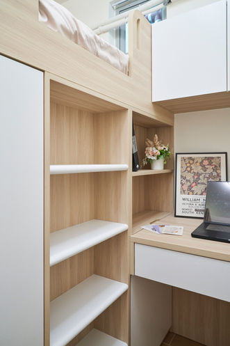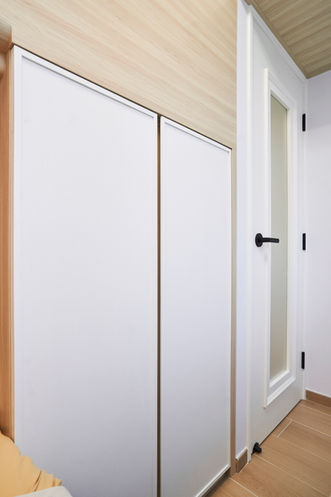 木與白的對話,勾勒出簡約卻溫潤的居家氛圍。全屋以木紋元素作為基調,搭配潔淨白色,令空間明亮而純淨。圓角櫃體設計柔化了線條,既安全又細膩;大面積隱藏收納則讓生活保持整潔有序。